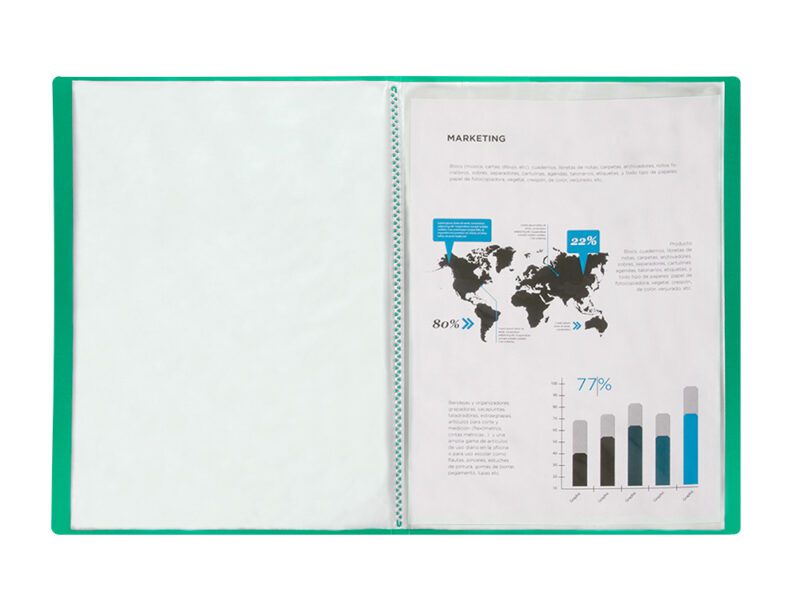 Com a capacidade de proteger e organizar documentos de forma eficiente, a pasta LIDERPAPEL Escaparate é uma solução funcional e visualmente atrativa para quem valoriza a ordem e a apresentação. O seu design robusto e versátil garante que é útil em diversos ambientes e aplicações.