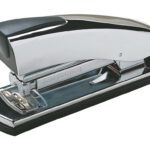 Metálico cromado. Profundidade do agrafado 7,2 cm da margem da folha. Carga 2 pentes (100 agrafes) usa agrafes nº 22/6, 24/6 e 26/6. Com base plástica antideslizante. Com carregador duplo antiobstrução. Incorpora o agrafado PGT (Paper Grip Technology) para um agrafado sempre perfeito. Comprimento da base: 135 mm. Medidas: 45 x 68 x 135 mm. O agrafador.