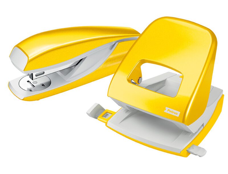 O agrafador PETRUS 635 WOW em amarelo metalizado é um excelente complemento para qualquer escritório ou espaço de trabalho. Concebido para ser durável e fiável, garante um desempenho ideal nas tarefas diárias de agrafagem graças à sua construção metálica e à tecnologia patenteada de impacto direto. O acabamento metálico confere-lhe um aspecto moderno e atraente, destacando-se tanto pela funcionalidade como pelo design.