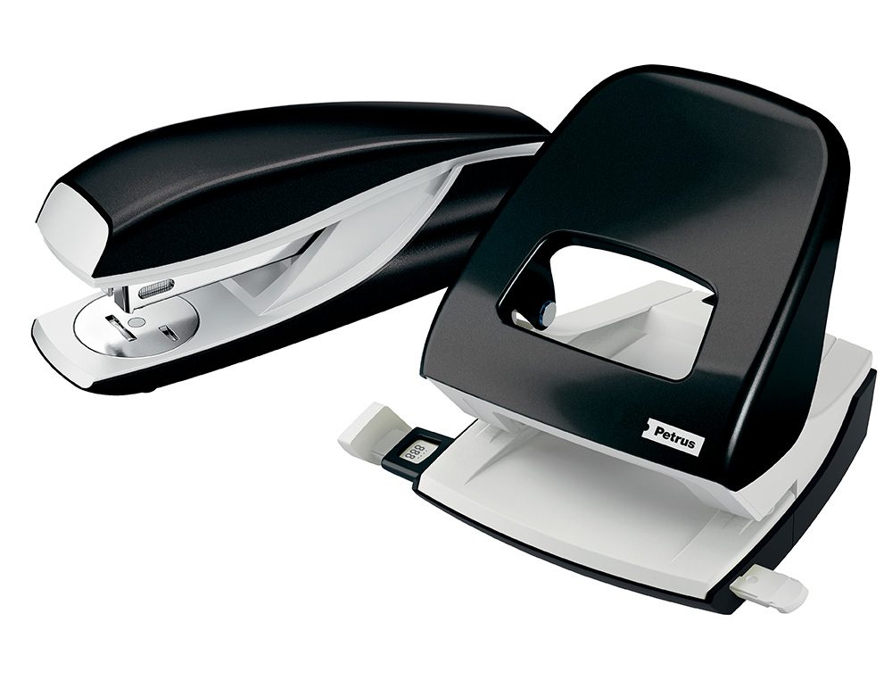 O agrafador preto metálico PETRUS 635 WOW é uma ferramenta essencial para qualquer escritório que procure eficiência e durabilidade nas suas tarefas organizacionais diárias. Com o seu design moderno e materiais de alta qualidade, este agrafador não só oferece um desempenho excecional, como também acrescenta um toque de elegância ao seu espaço de trabalho.
