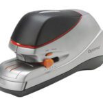 Ideal para grandes quantidades de papel. Oferece um agrafado plano, para poupança de espaço, e sem encravamentos. Indicador LED avisa quando tem que voltar a carregar agrafes. 2 modalidades de agrafado em plano: manual ou automático. Com compartimento para a armazenagem de agrafes. Profundidade de entrada de 32 mm. Agrafa até 45 folhas. Inclui caixa de 1.000 agrafes Rexel Optima Nº 56 e um adaptador de corrente. Cor cinza e preto com detalhes em laranja. Medidas: 130 x 95 x 265 mm. O agrafador.