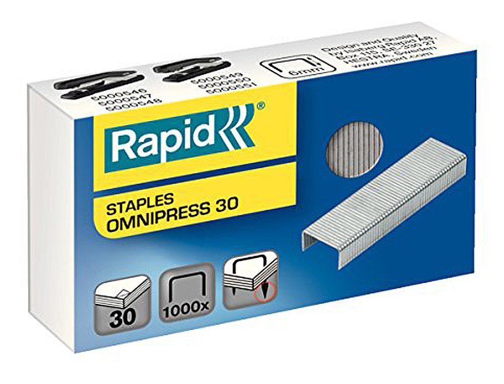 - Compatibilidade: Concebido para utilização com agrafadores RAPID Omnipress, mas compatível com outros agrafadores que aceitam agrafos tipo 30.