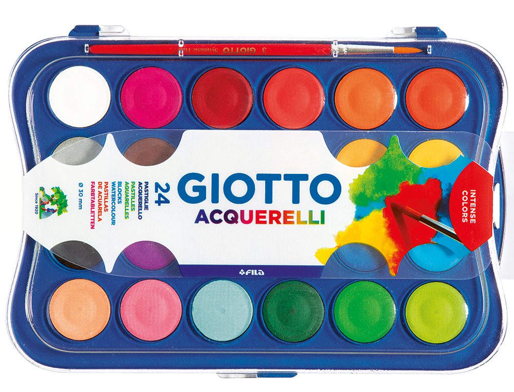 Águarela Giotto. Com 24 cores,. Estojo com plástico.