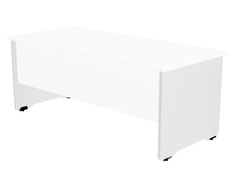 SUPERFÍCIE DA MESA: melamínico sobre aglomerado de 25 mm de espessura com cantos de PVC de 2 mm. Superfícies com cantos retos. ESTRUTURA: melamínica com sistema de regulação independente (20 mm), melamínico sobre aglomerado de 25 mm de espessura com cantos de PVC de 2 mm de espessura. Estrutura com cantos redondos.