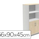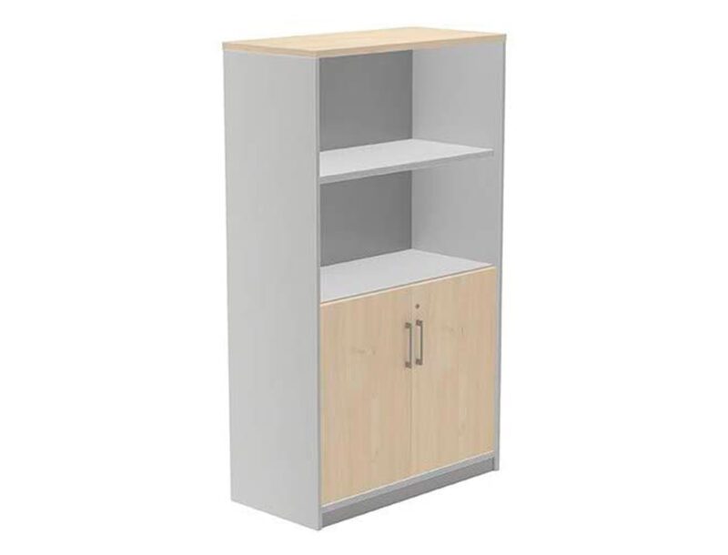 Estrutura de melamina de 25 e 19 mm de espessura, com cantos de PVC de 2 mm. Sistema de regulação independente graças a 4 niveladores com um espaço de 20 mm, protegidos por uma base metálica pintada em epoxy de cor alumínio. A parte traseira é formada por uma só peça fabricada em DM de 3 mm, de cor cinza dos dois lados. As prateleiras são de melamina, como a estrutura. Apresentada em dois tipos de acabamentos: Faia ou alumínio. Graças ao mecanismo existente nas partes laterais, podem ser colocadas em altura diferente. Também permite a fixação de prateleiras metálicas pintadas a epoxy de cor cinza e que permitem colocar capas na parte inferior. O topo existe em 3 acabamentos distintos: Faia, cinza ou BRANCO. Em todos os casos inclui só uma prateleira central.