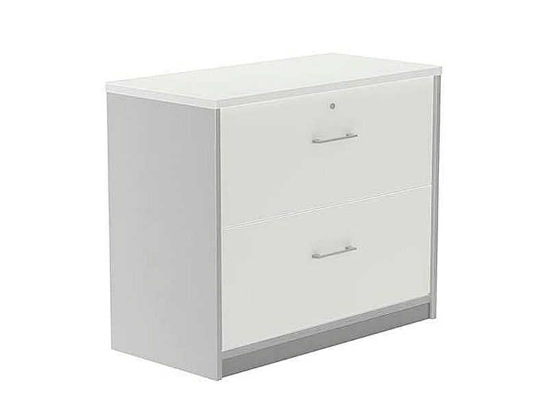 Estrutura de melamina de 25 e 19 mm de espessura, com cantos de PVC de 2 mm. Sistema de regulação independente graças a 4 niveladores com um espaço de 20 mm, protegidos por uma base metálica pintada em epoxy de cor alumínio. A parte traseira é formada por uma só peça fabricada em DM de 3 mm, de cor cinza dos dois lados. As prateleiras são de melamina, como a estrutura. Apresentada em dois tipos de acabamentos: Faia ou alumínio. Graças ao mecanismo existente nas partes laterais, podem ser colocadas em altura diferente. Também permite a fixação de prateleiras metálicas pintadas a epoxy de cor cinza e que permitem colocar capas na parte inferior. O topo existe em 3 acabamentos distintos: Faia, cinza ou BRANCO. Em todos os casos inclui só uma prateleira central.