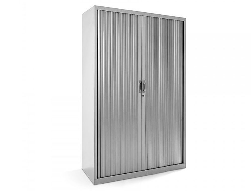 Armário metálico com prateleira em aço. Portas de persiana com fechadura fabricada em polímero técnico. Montado em série.