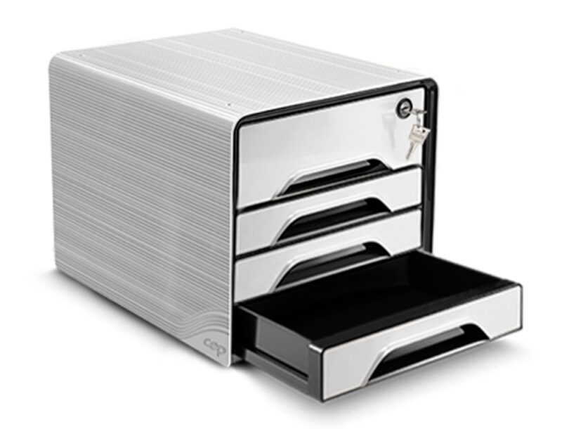 Módulo de 5 gavetas com fechadura. Medidas: 360 x 288 x 270 mm.