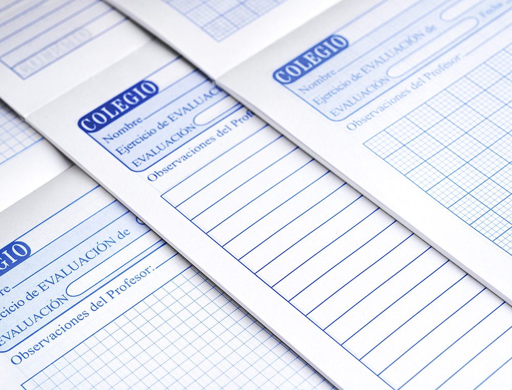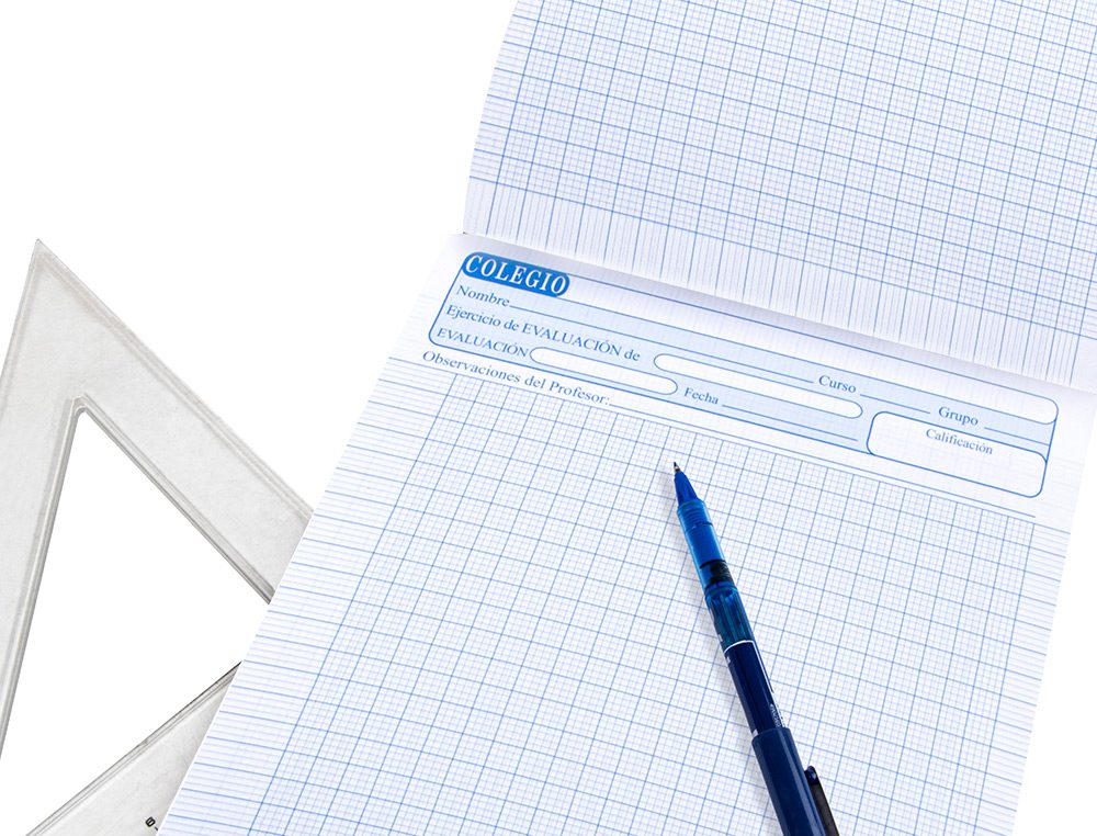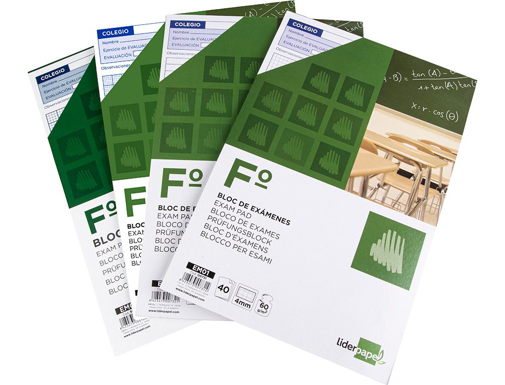 Bloco exames Liderpapel fólio. Com 40 folhas. Texto em espanhol,