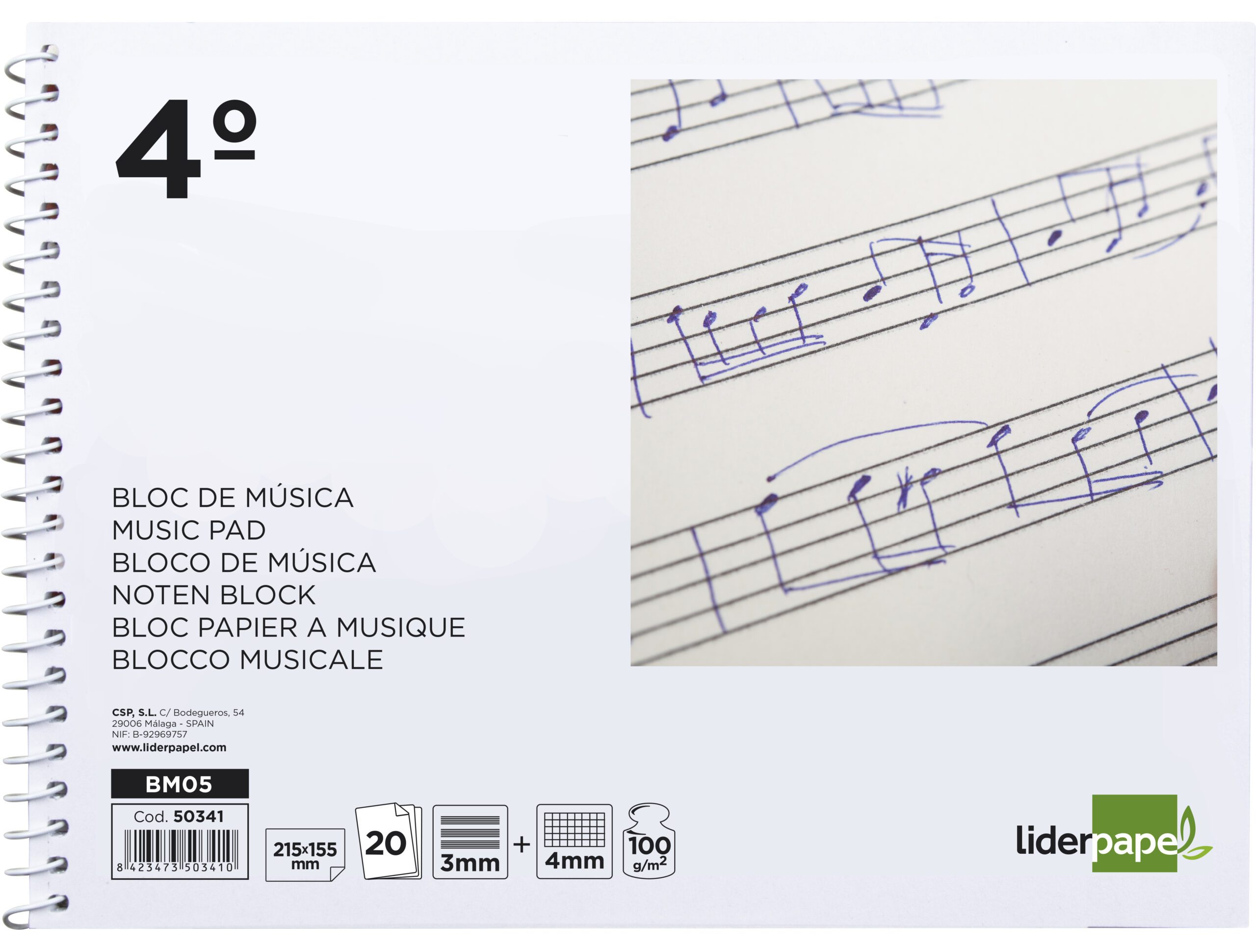 O LIDERPAPEL Combi Music Pad é a ferramenta perfeita para músicos, estudantes e compositores que procuram um suporte versátil e de alta qualidade para os seus projetos. Concebido para facilitar a escrita de partituras e a tomada de notas, este bloco oferece um design inovador que combina pautas e grelhas.