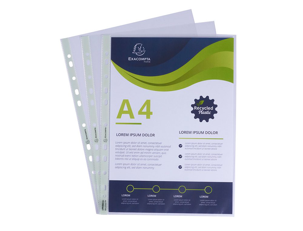 Conheça a capa multifuros EXACOMPTA reciclada, especialmente desenhada para proteger e organizar os seus documentos em formato DIN A4. Fabricada em polipropileno 100% reciclado, esta capa não é apenas uma opção sustentável, mas também altamente funcional, oferecendo uma excelente transparência e uma resistência notável graças à sua espessura de 60 mícrons. Além disso, o seu acabamento casca de laranja proporciona uma textura especial que minimiza os reflexos, melhorando a visibilidade em qualquer ambiente de iluminação.
