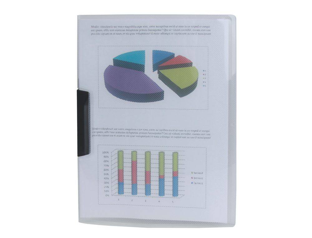 - Design Translúcido: A sua cor incolor permite visualizar facilmente o conteúdo sem abrir a pasta, facilitando a rápida identificação dos documentos.