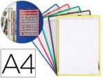 Bolsas para pendurar com anel metálico cromado. Bolsa fabricada em PVC antirreflexos. Reforçadas com um quadro em fio de aço que otorga uma resistência máxima. Din A4. Cores sortidas (azul, vermelho, amarelo, verde e preto). Pack de 5 bolsas.