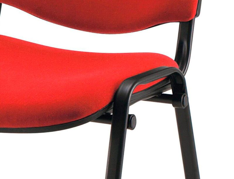 Empilhável. Costas e assento: Estofados em malha altamente resistente. Base: Metálica e com quatro pernas com 4 tampões para evitar atrito. Altura da cadeira: 91 cm. Altura do assento: 42 cm. Largura do assento: 46 cm. Profundidade do assento: 44 cm. Altura do encosto: 33 cm. Horas de uso: 4 / 5 horas. Peso da cadeira / peso máximo suportado: 5,3 kg / 100 kg. A cadeira.