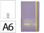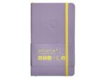 Caderno com Elástico Antartik capa mole roxo e amarelo. Formato A6, com 100 folhas lisas, gramagem 80 grs.
