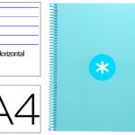 Caderno Espiral Liderpapel Antartik capa forrada. Formato A4, com 80 folhas, papel de 90 grs. pautado. Uma banda com 4 furos. Cor celeste.