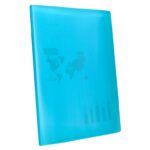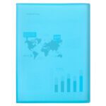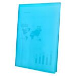 - Design: A cor azul translúcida facilita a identificação rápida de documentos.