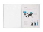 - Material: O polipropileno translúcido permite visualizar parcialmente o conteúdo sem abrir a pasta. É leve, fácil de limpar e resistente à humidade.