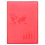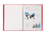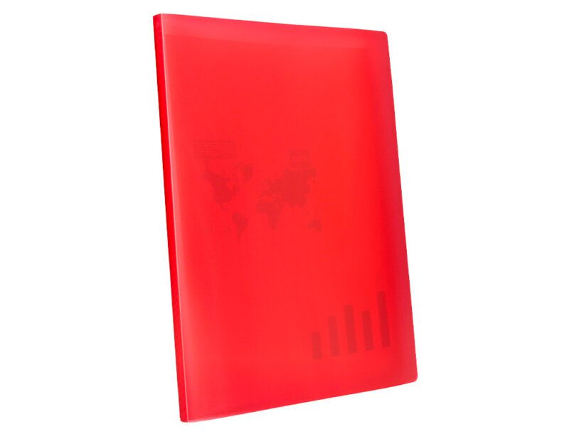 - Design: Cor vermelha translúcida que permite a rápida identificação do conteúdo sem necessidade de abrir completamente a pasta.