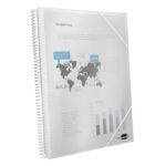 A pasta espiral LIDERPAPEL Escaparate oferece uma solução prática e duradoura para a organização e apresentação de documentos. Fabricado em polipropileno translúcido, além de resistente, é leve, facilitando o transporte e o manuseamento. O seu design transparente facilita a identificação do conteúdo, enquanto a encadernação em espiral e o fecho elástico garantem que os seus documentos estão sempre protegidos e acessíveis.