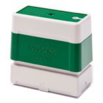 - O carimbo é pré-tintado, o que significa que não precisa de uma almofada de tinta separada. A tinta está integrada no próprio carimbo.