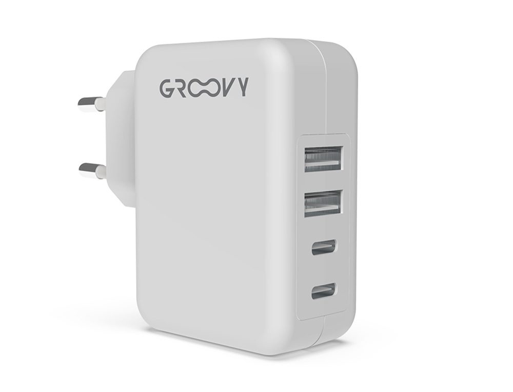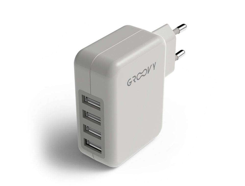 Carregador de Parede Groovy 4 Usb. Cor branco.