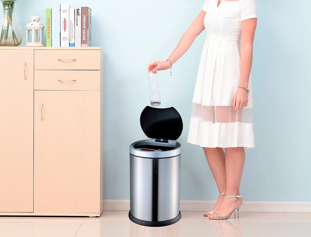 Cesto fabricado em metal com acabamento espelhado. Com sistema de abertura automática que deteta os movimentos. Resistente, higiénico e seguro. Funciona com pilhas. Pilhas não incluídas. Ideal para escritórios e restaurantes.