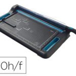 Guilhotina de alavanca de precisão, formato Din A3. Capacidade de corte de 30 folhas de 80 g/m². Equipada com uma tela protetora transparente e dobrável para reduzir o espaço. Mecanismo de bloqueio que impede o disco de levantar quando a proteção não se encontra na posição vertical. Base em aço pré-impresso com formatos de papel e fotografia em cm e polegadas. Tem uma bandeja de recolha de resíduos de papel. Corte máximo 460 mm. Medidas: 820 x 120 x 420 mm. A guilhotina.