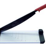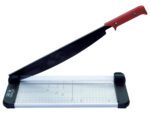 Com base robusta em alumínio, lâmina inferior em aço temperado, com vareta para proteger os dedos e linhas marcadas em centímetros e polegadas, apta para formatos Din. Capacidade de corte: 8 folhas.