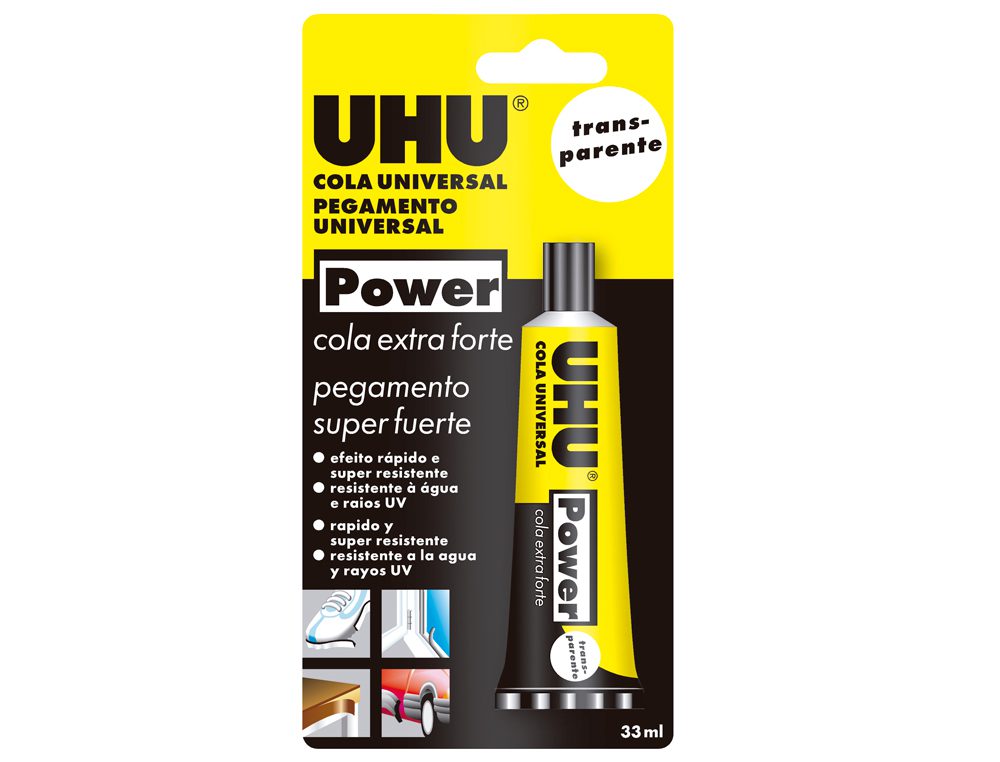 Ideal para todo o tipo de reparações caseiras e bricolage. Cola praticamente todo o tipo de materiais: metal, vidro, madeira, couro, tecidos, borracha, plástico, vinil, feltro, cortiça, cerâmica, porcelana e muito mais. Blister de 33ml.