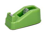 Desenrolador fabricado 100% em plástico reciclado. Para fitas até 33 m. Base antideslizante. Ideal para uso em escritórios e establecimentos de comércio. Não inclui fita. Cor verde. Medidas: 125 x 64 x 49 mm.