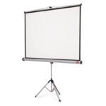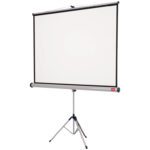 Ecrã de projeção de alta qualidade. Superfície branca mate com rebordo preto que garante uma imagem detalhada e nítida. Flexível para projeção digital ou suspensa e totalmente móvel. O ecrã dispõe de um braço suspenso para inclinar para a frente que permite recolher ao seu alojamento para ficar protegido de possíveis danos. O ecrã.