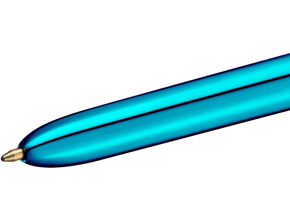 O BIC Four Colours Shine Blue é o companheiro perfeito para quem procura versatilidade e estilo num único instrumento de escrita. Com o seu design moderno e acabamentos metálicos brilhantes, esta caneta não é apenas funcional, mas também atraente. Alternar entre as quatro cores de tinta é tão simples como premir um botão, permitindo corrigir, marcar ou diferenciar texto com facilidade. A sua tinta de alta qualidade seca rapidamente, garantindo uma escrita suave e sem manchas.