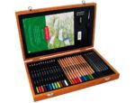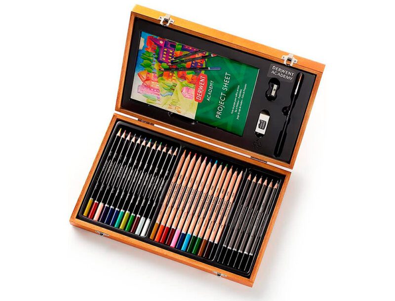 Atrativo conjunto artístico com tudo o que é necessário para começar a desenhar e esboçar. Lápis de cor ideais para criar sobreposições e misturar. Inclui: 6 lápis de grafite de distintas durezas, 12 lápis de cor standard, 12 lápis de cor aguareláveis, 1 bloco de desenho, 1 borracha, 1 apara lápis e 1 pincel. Inclui uma folha de projeto com conselhos úteis e 3 projetos para completar. Lápis aptos para apara lápis standard. Medidas: 34,5 x 23 x 5,5 cm. O estojo.
