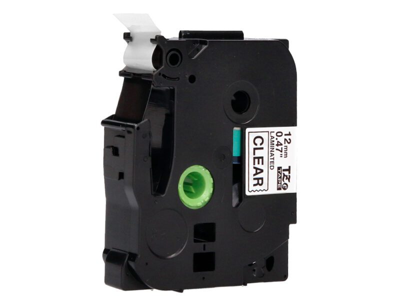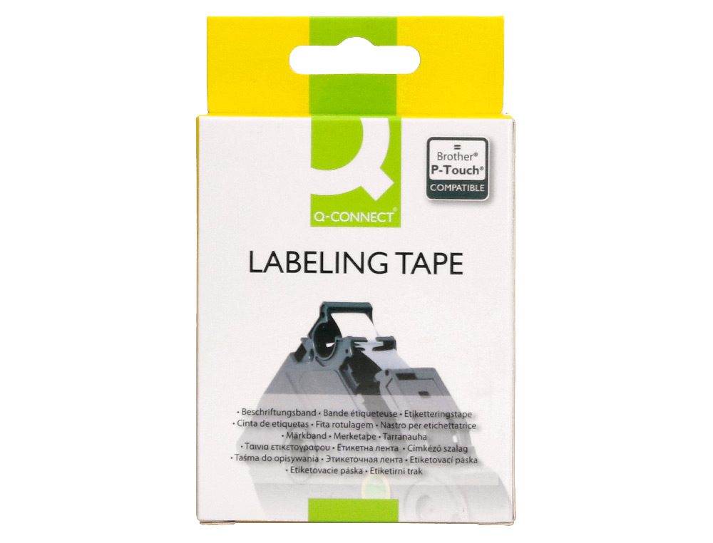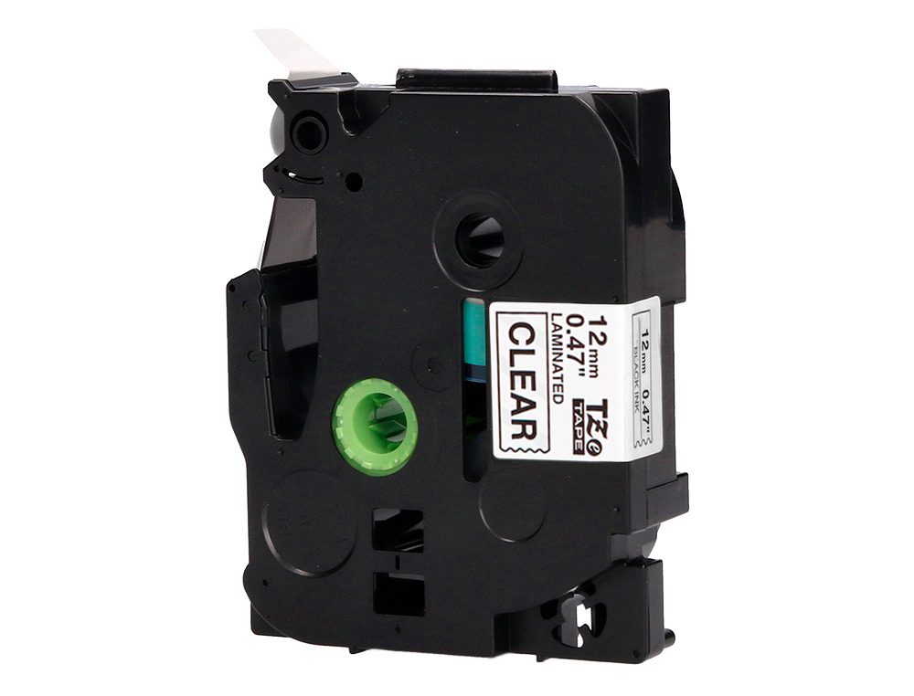 Fita Q-Connect Tze-131, transparente-preta, 12mm. X 8 metros.