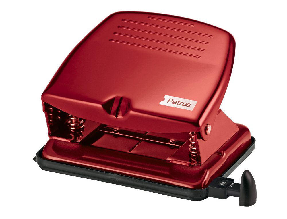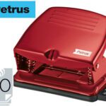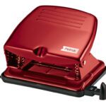 Metálico pintado, ideal para o uso em escritório. Com capacidade para perfurar 20 folhas. Com régua para alinhar o papel. Agora com punções mais afiados que permitem uma perfuração mais fácil. Além disso, incorporou-se uma nova régua que permite um ajuste perfeito e que não se move enquanto se perfura. Também dispõe de uma janela que marca o formato selecionado. Medidas da base: 110 x 90 mm. O furador.