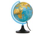 Globo Geográfico Iluminado. Base Em Resina De Cor Azul, Meridiano Com Graduação. Imitação Cristal Acetinado.