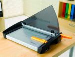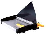 Guilhotina metálica de alavanca com base metálica e lâmina de aço inoxidável com auto-afiamento. Protetor SafeCut de lâmina transparente para garantir a segurança do utilizador ao cortar e dobrável para armazenar a máquina com facilidade. Capacidade de corte 40 folhas de 80 g/m². Prensador automático que fixa o papel durante o corte. Para cortar papel, cartão, cartolinas e outros materiais. Guias gravadas na base em centímetros, polegadas e formatos mais comuns.