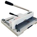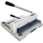 Comprimento de corte: 370 mm. Capacidade de corte de 150 folhas. Sistema de proteção. Esquadro gradual. Topo lateral ajustável. Visor e corte manual. Medidas base: 470 x 450 mm. Peso: 20 kg.
