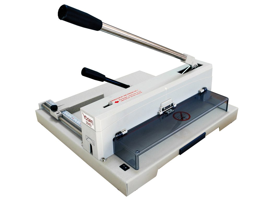 Comprimento de corte: 370 mm. Capacidade de corte de 150 folhas. Sistema de proteção, esquadro gradual. Topo lateral ajustável. Visor e corte manual. Medidas base: 470 X 450 mm. Péso: 20 Kg.