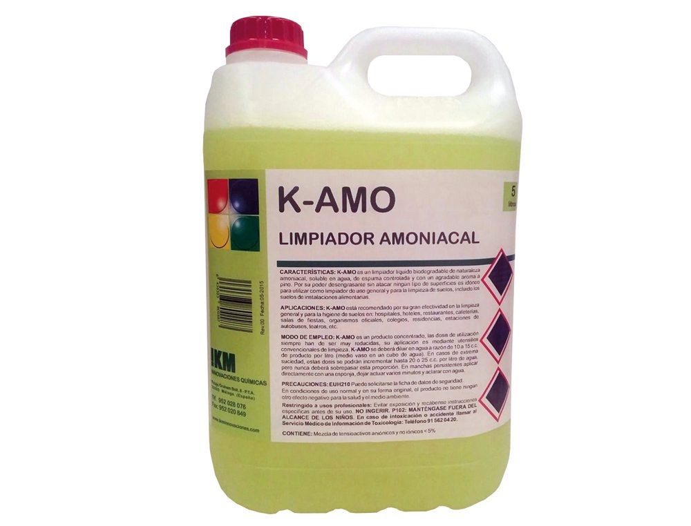 Líquido biodegradável de natureza amoniacal, solúvel em água, de espuma controlada e com um agradável aroma a pinho. Limpeza e higiene total. De uso geral. Recomendado para solos de hospitais, hotéis, salas de festas, colégios, estações de autocarros, etc. Garrafa de 5 litros.