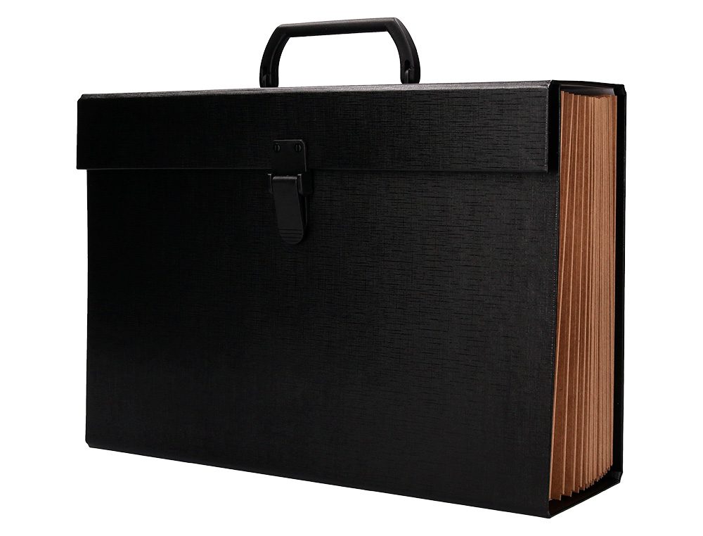 - Fechadura: Mecanismo de fecho com fecho, que garante a proteção do conteúdo e evita a perda de documentos.
