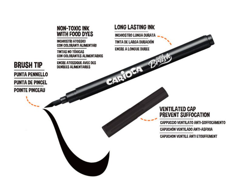 Descubra a criatividade ilimitada com os marcadores CARIOCA Super Brush. Com uma ponta flexível em forma de pincel e tinta lavável, são perfeitos para projetos de caligrafia e arte. Estes marcadores oferecem uma experiência de escrita e desenho versátil e colorida, ideal para crianças e adultos.