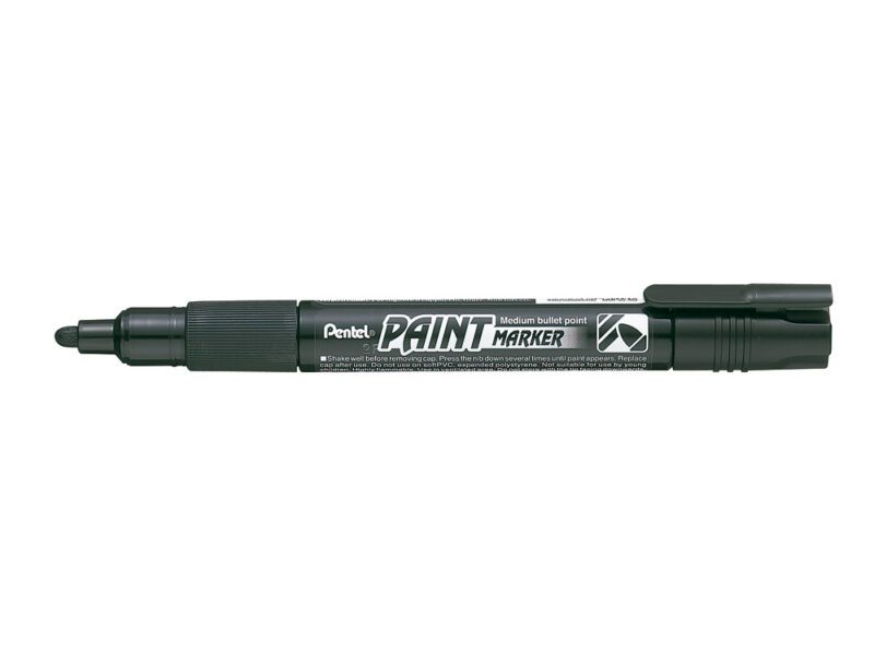 Marcador de ponta redonda para uso em vidro, plástico, borracha e metal. Com cores claras e vivas. 240 metros de distância de escrita. Disponível em 15 cores. Traço de 4,6 mm.