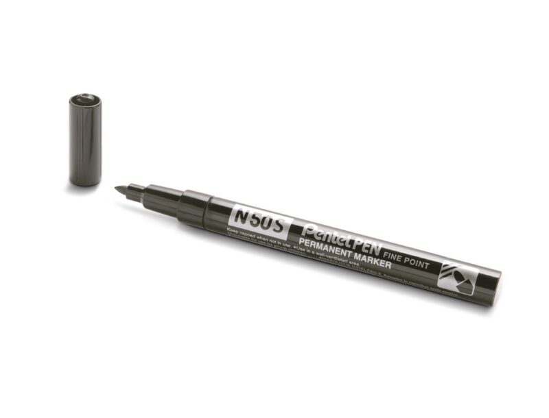 Marcador de ponta redonda com tinta permanente à prova de água. Ideal para quase todas as superfícies. 1.000 metros de distância de escrita. Ponta de 4,3 mm. Corpo metálico.