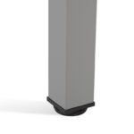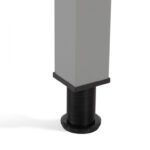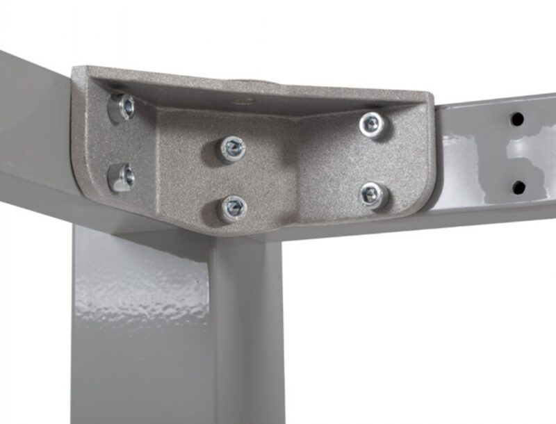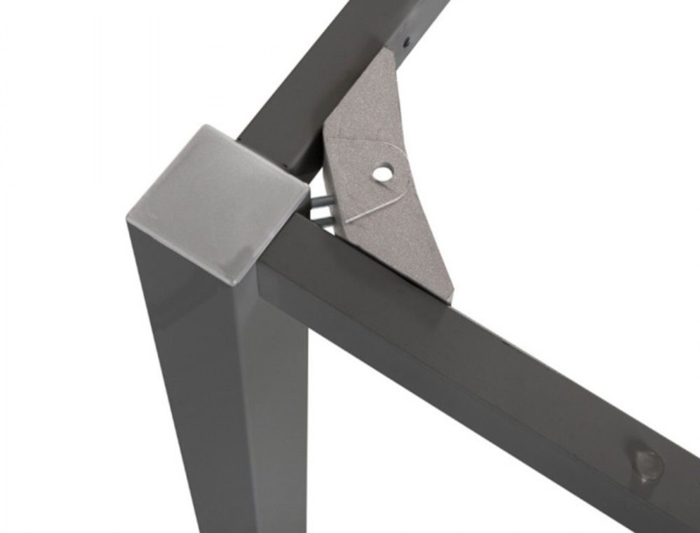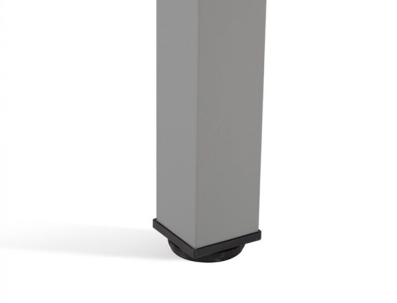 SUPERFÍCIE DA MESA: melamínico sobre aglomerado de 25 mm de espessura com cantos de PVC de 2 mm. Acabamentos em faia, cinza e wengué. Superfícies de cantos retos. ESTRUTURA: com sistema de regulação independente (50 mm) fabricada em tubo de aço de 60 x 60 x 1,5 mm. Sistema de ancoragem em fundição de alumínio. Travessas tubulares de aço com novas medidas reduzidas de 40 x 30 mm para uma máxima comodidade.
