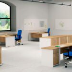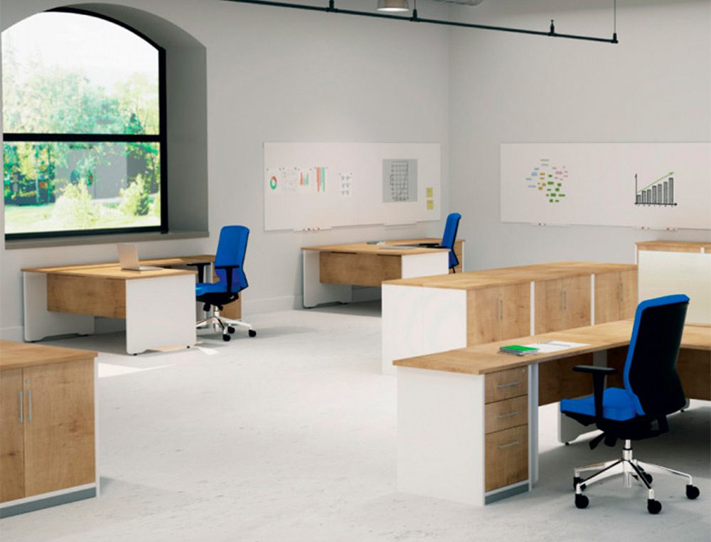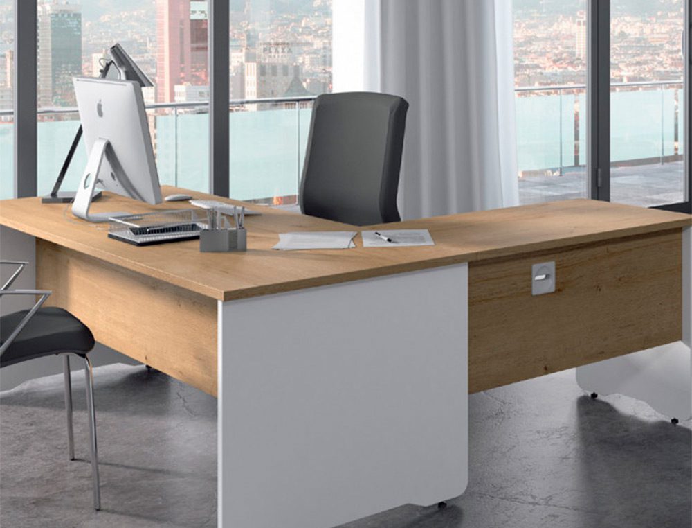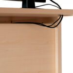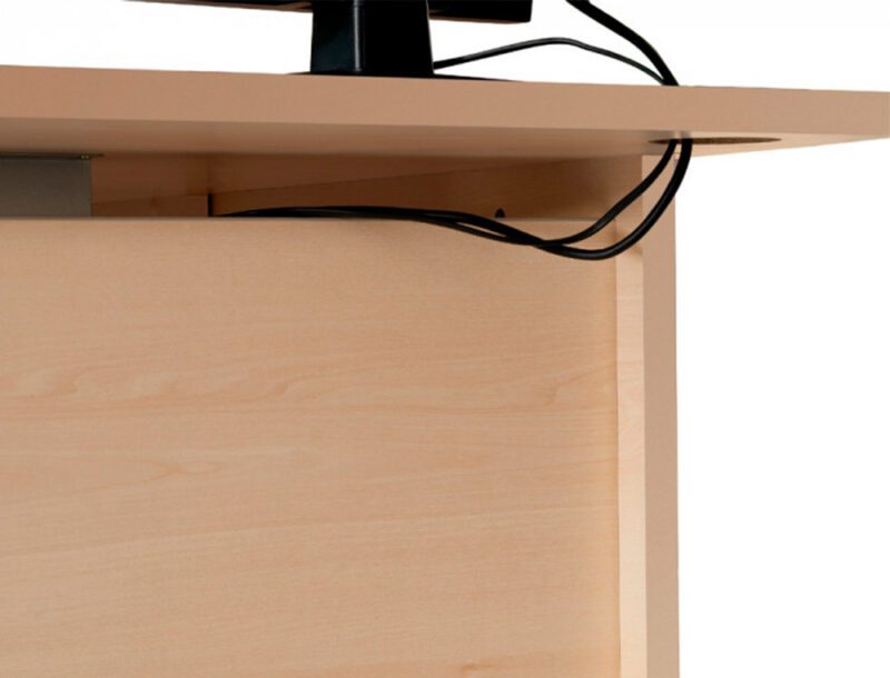 SUPERFÍCIE DA MESA: melamínico sobre aglomerado de 25 mm de espessura com cantos de PVC de 2 mm. Superfícies com cantos retos. ESTRUTURA: melamínica com sistema de regulação independente (20 mm), melamínico sobre aglomerado de 25 mm de espessura com cantos de PVC de 2 mm de espessura. Estrutura com cantos redondos.