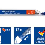 As minas HB STAEDTLER Mars Micro Graphite 0,5 mm são uma excelente escolha para quem procura um produto fiável e de alta qualidade para as suas necessidades de escrita e desenho. A sua durabilidade, consistência e versatilidade fazem deles uma ferramenta essencial em qualquer estojo de material de escrita ou desenho.
