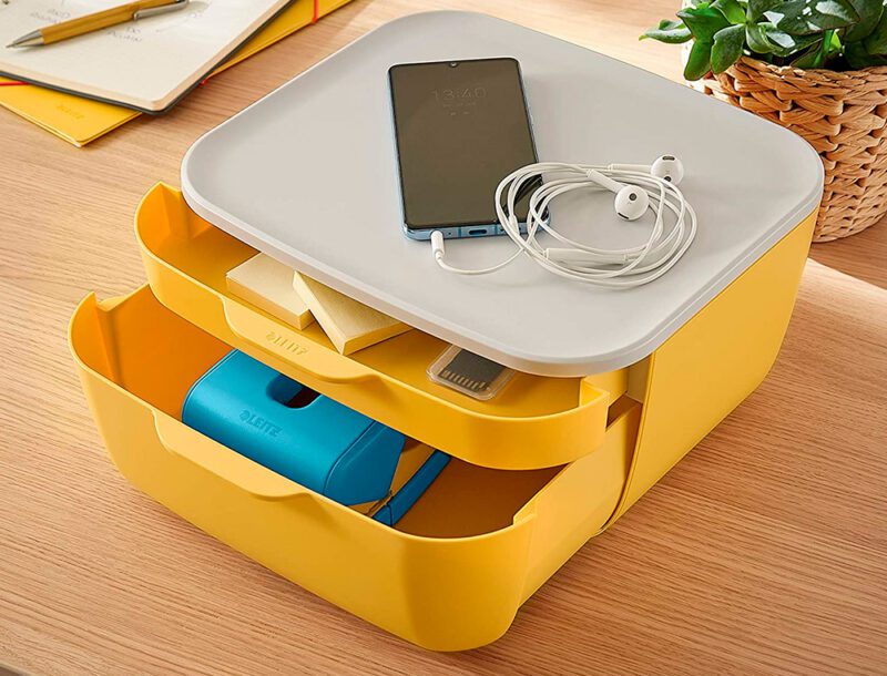 Guarde todos os itens essenciais para o dia-a-dia, como canetas, cabos, cadernos e até mesmo comida na cozinha. Uma gaveta pequena e uma grande. Tamanho: 27,5 cm de largura, 25 cm de profundidade, 14,5 cm de altura.