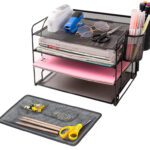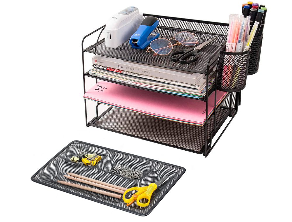Otimize o seu espaço de trabalho com este eficiente organizador de secretária em grade metálica, concebido para manter o seu escritório arrumado e os seus documentos ao seu alcance. O seu design moderno em preto integra-se facilmente em qualquer ambiente profissional.